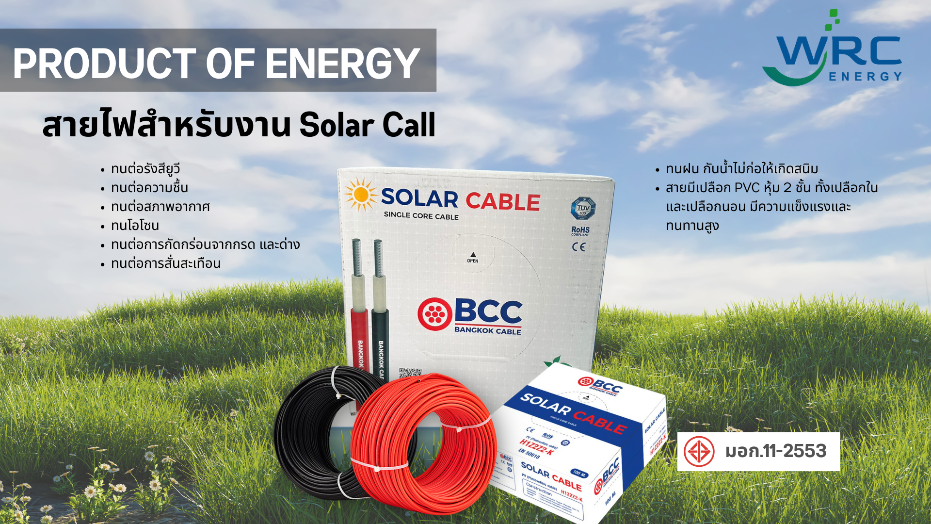 สายไฟ (DC) สายไฟ (AC) ได้รับมาตรฐานมอก. และ เป็นที่ยอมรับในท้องตลาด